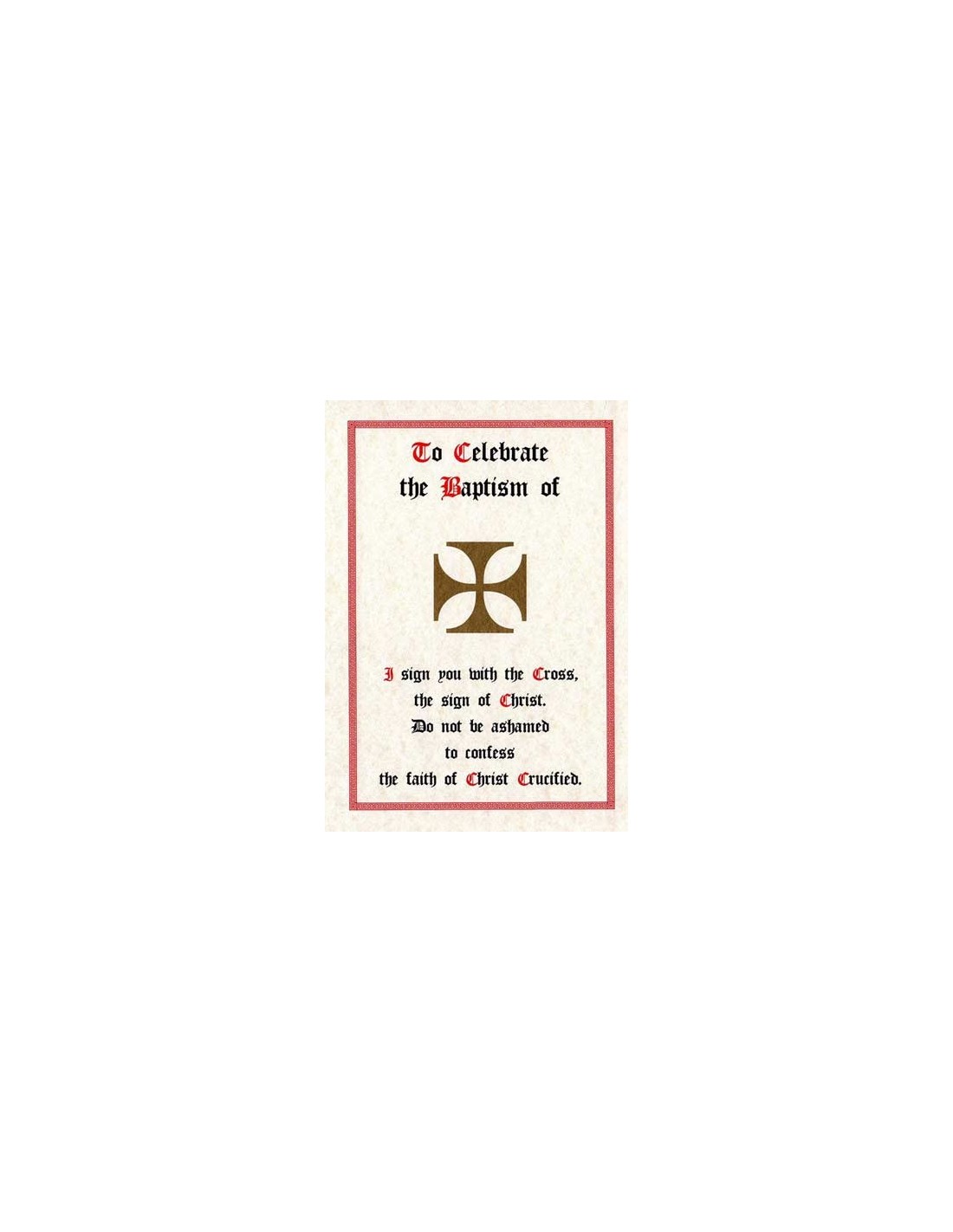 Certificates Baptism Card for Godparents £1.90 A5 Folded Baptism Card for Godparents. (Godparents Commission) Printed in Red and Black ink on cream card. Add to cart