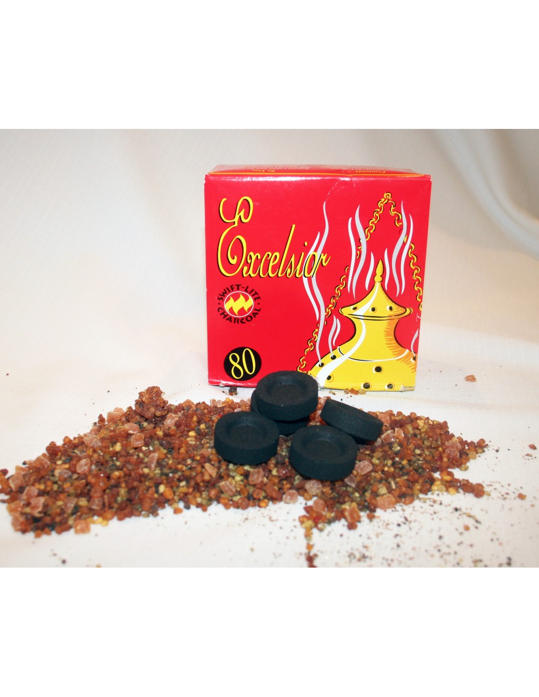 Swift lighting Excelsior charcoal packed in rolls of ten, total 8 rolls 80 rings. approx. half an hour burning time.